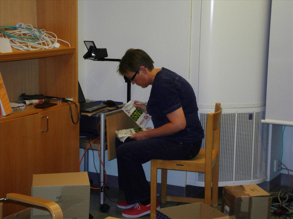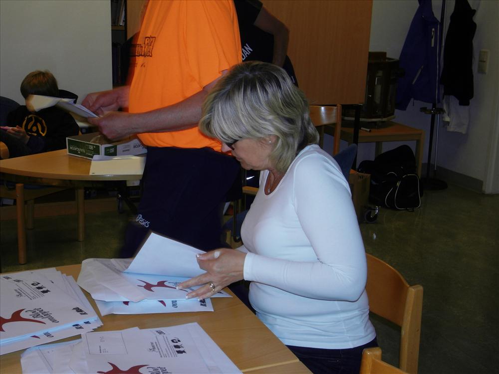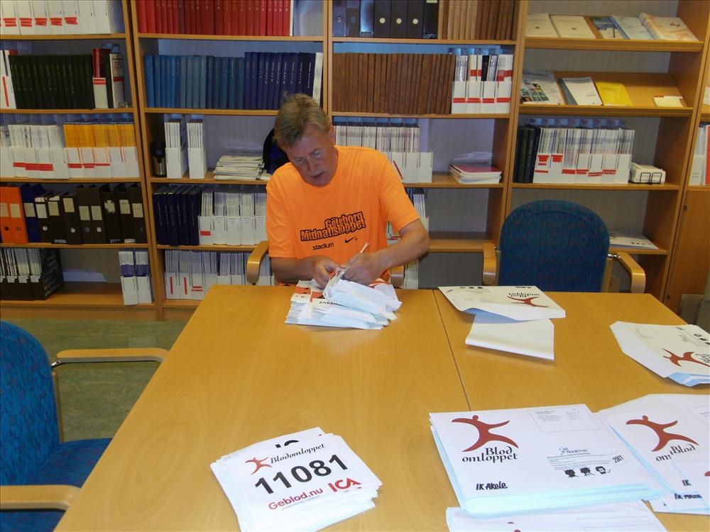 Torsdagen 17 och fredagen den 18 maj har ca 12 300 nummerlappar hamnat i kuvert tillsammans med säkerhetsnålar, PM och intressant reklam. Två dagars intensivt slit från klockan 8.00 till 14.00, med två olika gäng och totalt 28 deltagare.