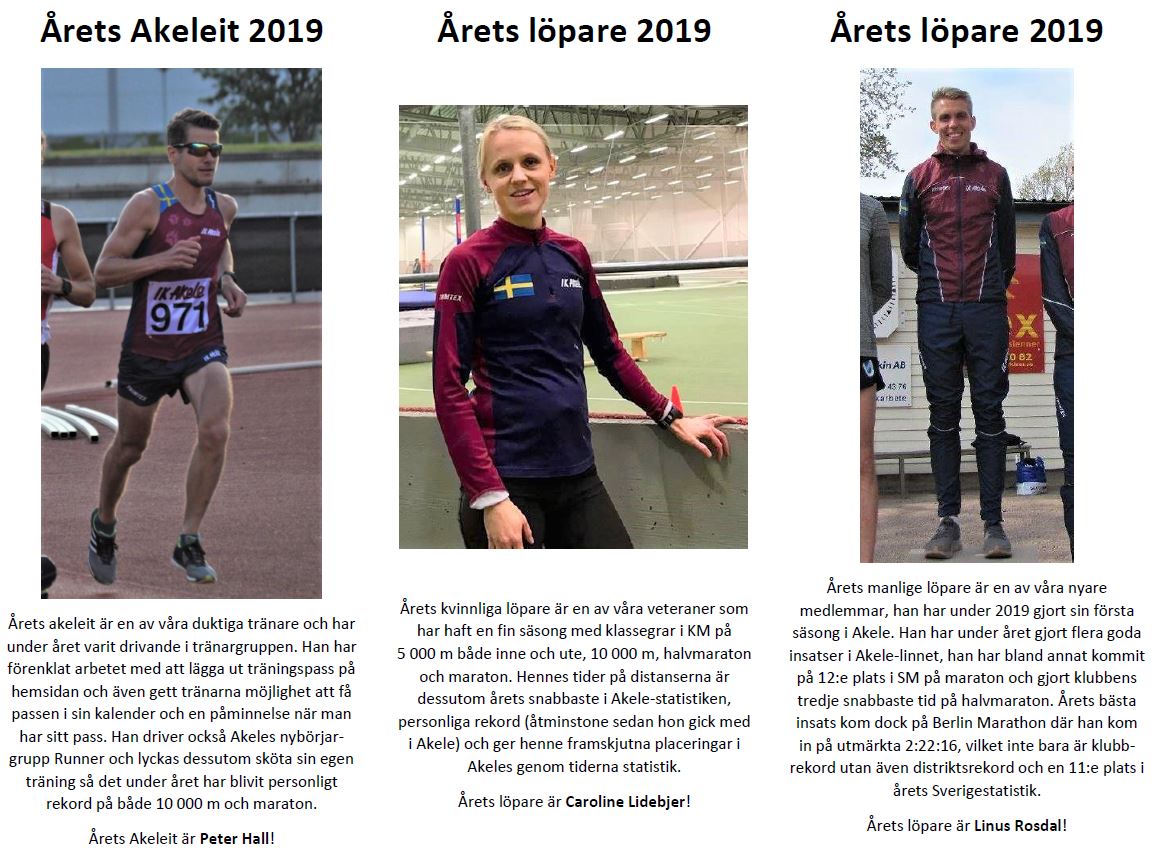 IK Akele är klubben för dig som gillar löpning oavsett ålder, ambitions- eller prestationsnivå! Klubben består av barn- och ungdomsverksamhet, motionsverksamhet och elitverksamhet. Med erfarna ledare och tränare samt engagerade medlemmar så blir träningspassen både stimulerande och utvecklande efter dina förutsättningar. Vi värdesätter god stämning och gemenskap samtidigt som vi jobbar för att utveckla varandra som löpare.